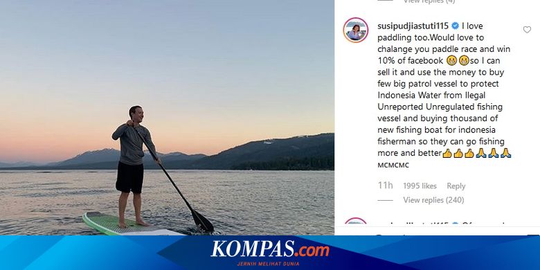 Tantang Mark Zuckerberg Lomba Paddle Menteri Susi Minta Hadiah Saham Facebook